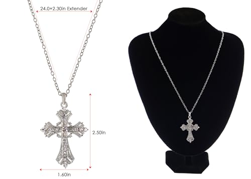 • Features - Cable chain necklace with clear crystal colored rhinestones and ornate cross pendant.