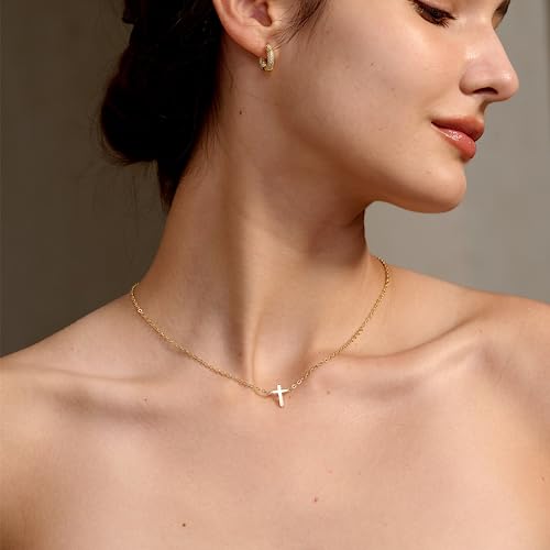 HOT ! Tewiky Dainty Cross Necklace for Women, 14K Gold Plated Simple Cross Choker Necklaces Small Cross Pendant Tiny Cute Necklaces Handmade Aesthetic Gold Jewelry for Women