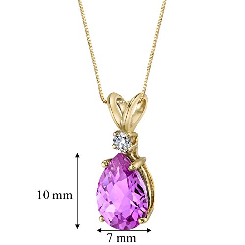 More information about PEORA 14K Yellow Gold Created Pink Sapphire with Genuine Diamond Pendant, Elegant Teardrop Solitaire, Pear Shape, 10x7mm, 2.50 Carats total, September Birthstone Necklace, Sparkling Sapphire Jewelry