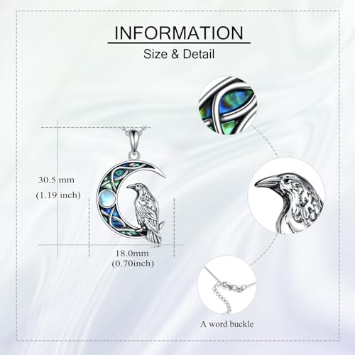 • 💖925 Sterling Silver Material: Raven jewelry for women is made of 925 sterling silver, abalone shell and moonstone, no nickel, no lead, no cadmium, without any allergenic elements. Crow necklace sterling silver, not easy to fade, has a long-lasting luster