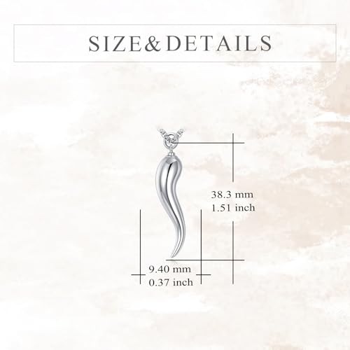YFN 925 Sterling Silver Italian Horn Necklace for Men Women Protection Good Luck Pendant with 22+2" Chain Gift for Christmas, Valentine's Day, Father's Day, Mother's Day, Birthday-Gift Box Included 4