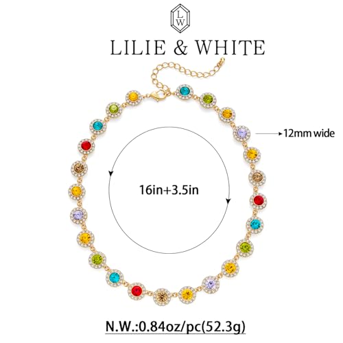 More information about LILIE&WHITE Colorful Rhinestones Gold necklaces for women Trendy Chain Choker Necklaces Multicolor Gemstone Rainbow Necklace Bead Necklace Statement Neckalce Jewelry Gift