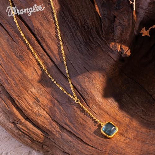 HOT ! Montana West Wrangler Gold Gemstone Pendant Necklace for Women Statement 14K Plated Dainty Charm Minimalist Chains Jewelry