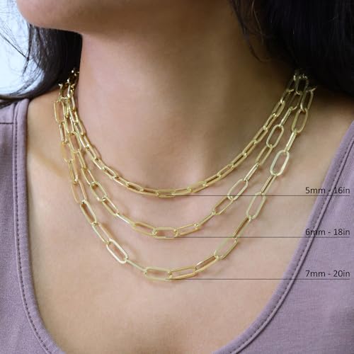 Nuragold 14K Real Yellow Gold Paperclip Chain Elongated Cable Link Necklace 16"-24" (2mm-7mm) Italian Jewelry for Men & Women 5