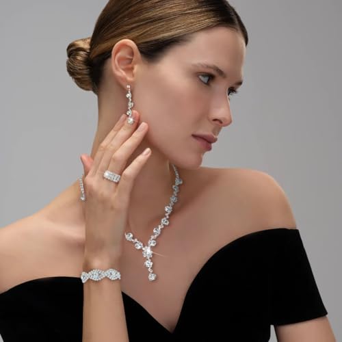 • BRIDAL JEWELRY SET: The elegant jewelry set for women is an excellent present for girlfriends, wives, mothers or friends on Valentine's Day, Valentine's Day, Christmas, Mother's Day, birthdays, Thanksgiving, anniversaries, wedding celebrations, graduation ceremonies, dances, and other holidays. This jewelry set is perfect for adding a touch of sparkle and shine to your look