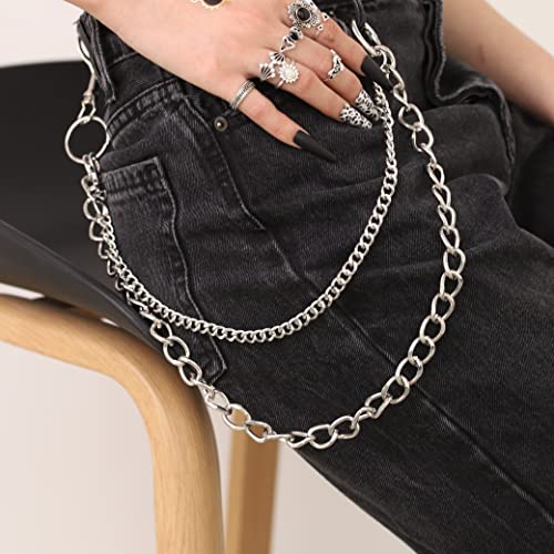 Bounzhi Hip Hop Pants Jean Chain Goth Punk Silver Trousers Chains Biker Heavy Thick Wallet Pocket Chains Silver Keychains Body Jewelry for Men and Women (Silver), Free sizes 2