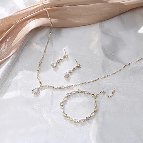 Crysdue Teardrop Bridal Jewelry Set for Wedding Party, Silver/14K/Rose Gold Plated Prom Costume Jewellery for Bride Bridesmaids Women, Cubic Zirconia Necklace Dangle Earrings Bracelet 3
