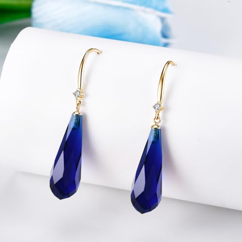 • ❤DESIGN DEAL❤ -- This 14K gold earrings use sapphire gemstone make it as a good choice for Women. Fits for Any Occasion as Party,Daily Wearing Home and Office, Birthday