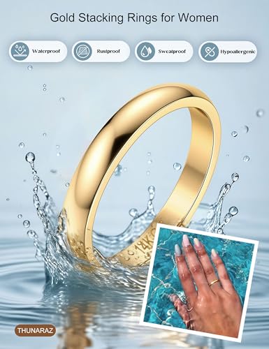 HOT ! THUNARAZ 14K Gold Filled Rings Stacking Rings for Women Stackable Thin Gold Ring Plain Pinky Thumb Midi Statement Band Ring Comfort Fit 4Pcs 1mm 2mm 3mm 5mm