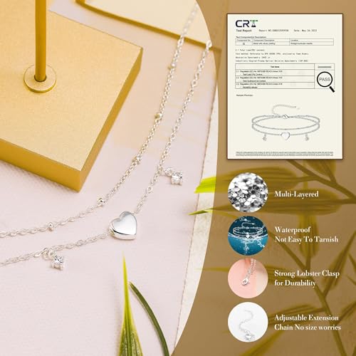 Sterling Silver Ankle Bracelets for Women Dainty,Gold Layered Waterproof CZ Heart Charm Anklets for Women Adjustable, Stackable Chain Anklet Set Cute Summer Beach Jewelry Plus Size 1