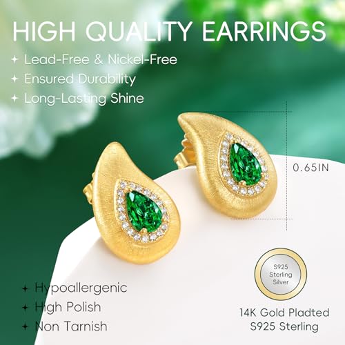 • 【Waterdrop Design】- This exquisite hand brushed gold earrings features a 0.65-inch teardrop adorned with intricate hairline detailing, showcasing a beautiful lab-grown emerald and 38 dazzling Moissanite stones in a teardrop arrangement, symbolizing pure and eternal love.
