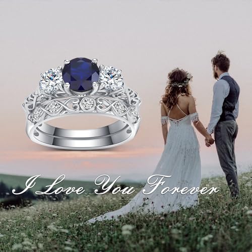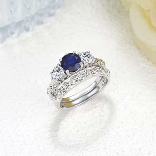 2.75 Carat(ctw) Round-Cut Sapphire Engagement Rings Sets for Women,10K 14K 18K Real Gold 3 Stones Moissanite Wedding Rings Sets,Bridal Ring with Free Engraving 7