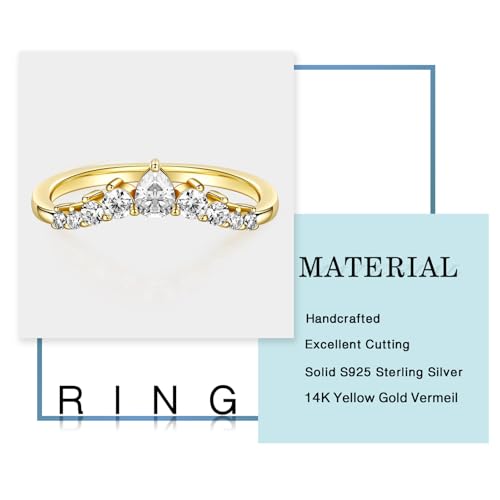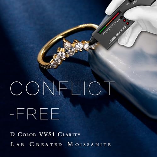MOOSEA Unique Moissanite Wedding Band for Women, D Color VVS1 Clarity Lab Created Rings 14K White Yellow Rose Gold Vermeil Pear and Round Moissanite Curved Stackable Rings for Women Gifts 4
