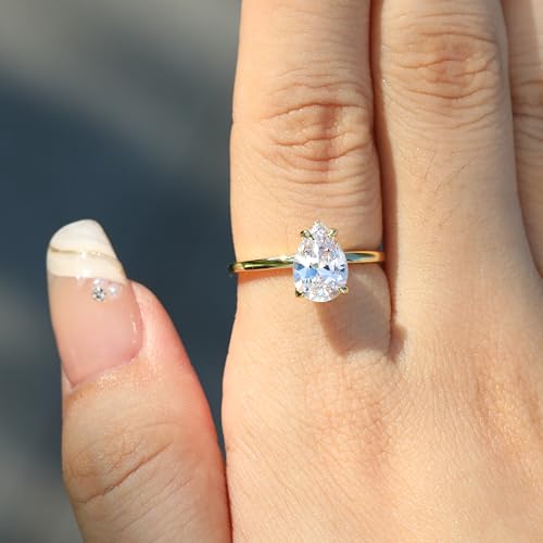 1CT/2CT/3CT Engagement Rings 925 Sterling Silver Pear Cut Cubic Zirconia/Moissanite Wedding Promise Rings for Her Stunning Teardrop Wedding Bands for Women Size 5-9 6