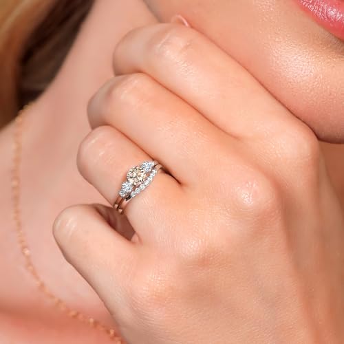 • COMPLETE 5-STONE BRIDAL SET: This set includes an engagement ring and a matching wedding band, designed to symbolize enduring love and unity. Artisan craftsmanship ensures secure stone placement, symmetry, and a smooth finish, creating a refined look perfect for engagements, weddings, and anniversaries.