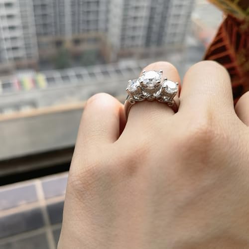 Claramos Moissanite Engagement Ring for Women,14K White Gold 925 Sterling Silver Round Three Stone D Color VVS1 Diamond Wedding Promise Rings for Her Gift Wife 6