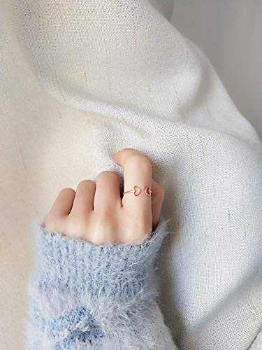 • Thin Small Double Hollow Heart Love Opening Ring, The Dainty Heart Shaped Ring is Opened And Adjustable, Fit for Most Fingers/Knuckles. Nice Engagement Promise Jewelry Ring for Her.
