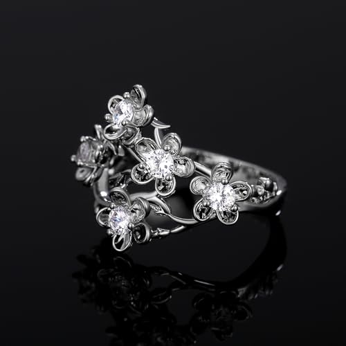 Graceful Flower Rings for Women Cubic Zirconia Finger Jewelry for Engagement 7