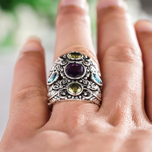 Vintage Silver Color Wide Ring for Women Bright Cubic Zirconia Jewelry for Anniversary 7