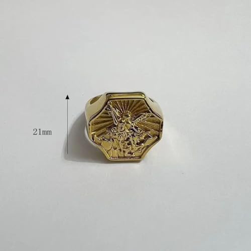 Vintage Archangel Saint Michael Titanium Steel Men's Women 316L Stainless Steel Ring 4