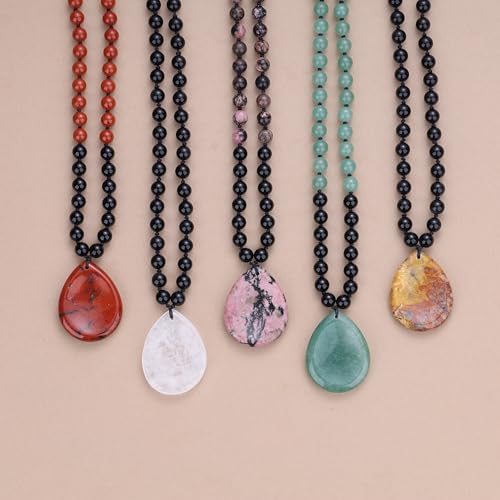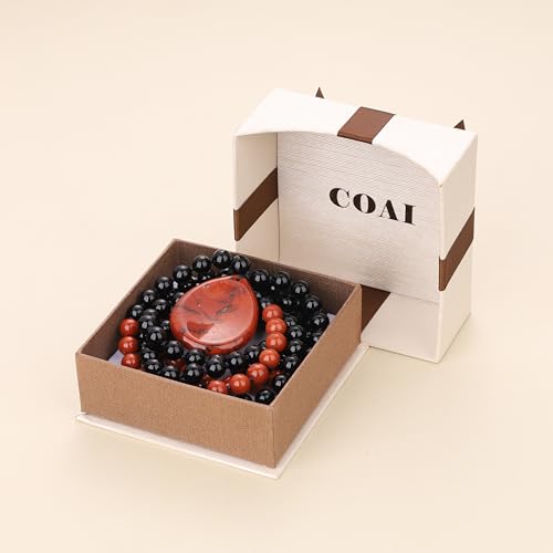 • Product Details: The women's men's beaded necklace features 8mm onyx & red jasper (108 beads), adorned with a 1.8*1.4*0.3"(45.5*35*8mm) thumb worry stone pendant made with red jasper; These natural worry stones for anxiety are beautifully hand-knotted to ensure durability and intention with every bead