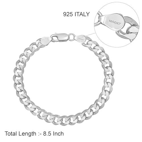 LeCalla Solid 925 Sterling Silver Curb Chain Bracelet for Men | Italian 6mm, 7mm Diamond Cut Cuban Link Curb Chain Bracelet (7.5, 8, 8.5 & 9 Inches), Made in Italy 4