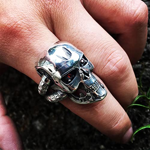 Large Terminator Ruby Eyes Skull Ring for Men 925 Sterling Silver Biker Hip Hop Rock Vintage Soldier Warrior Ring 5