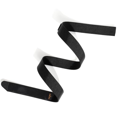 • Black 1 3/8" (35mm) wide heavy duty quality nylon webbing belt with no buckle, metal parts. Metal/nickel free belt. Hook & loop fasteners - Hook strap is narrower than the belt, rough side faces inward without scratching your skin, soft loop side faces outward without tearing your clothes. Belt end with angled/tapered rounded edges, which makes it easy to pass through the belt loop. Provides protection from dings and scratches. A simple but effective belt adjustable and comfortable.