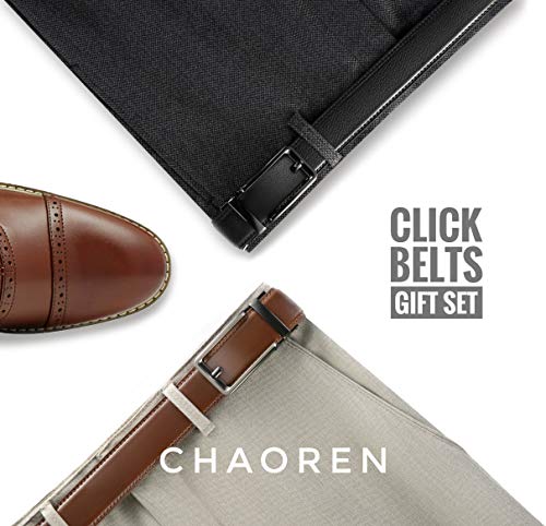 HOT ! CHAOREN Click Belts for Men 2 Pack - Mens Ratchet Leather Belt 1 3/8" for Dress and Casual - Micro Adjustable Belt Fit
