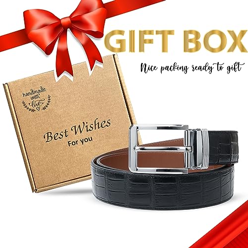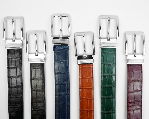 • ✅ HIGH-QUALITY LEATHER: Black surface material belt for men is made from high-quality Alligator Belly/Hornback, and the underside of the belt is made of durable full-grain cowhide. It features a unique texture and pattern that adds a touch of sophistication to any outfit. Alligator is known for its durability, so this type of belt is sure to last for years to come. Combined with cowhide material, the belt gives a luxury, soft texture, comfort, shine, durability, and elegance.