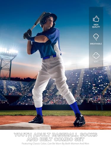 • Youth Adult Baseball Socks and Belt Set: Our baseball socks and belt set includes 2 baseball socks and 1 belt fit most youth adult waist sizes for a perfect game-ready accessory solution