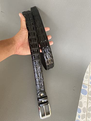 More information about black genuine crocodile hornback leather skin belt with prong buckle for men, handmade alligator skin belt