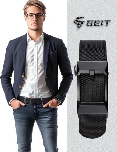 HOT ! GEIT Men's Canvas Ratchet Belt, 1 3/8" Adjustable Nylon Belt with Slide Click Buckle for Casual Golf Work