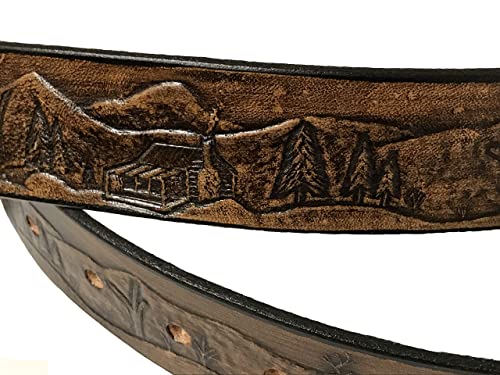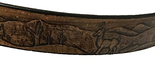 Deer Design Handmade Mens Leather Belt with Deer Buckle Western Work Casual Belt 1.5" Wide Cocoa Brown 7