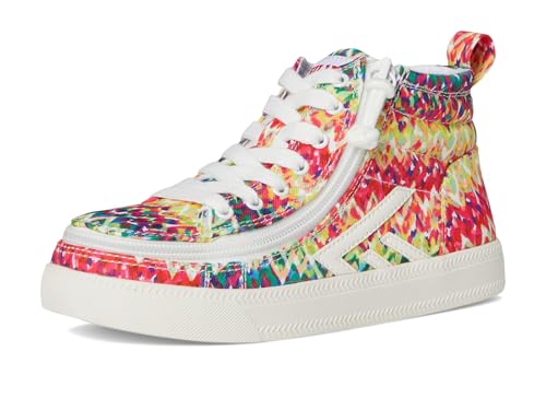 • Add a pop of color to your wardrobe with the BILLY Footwear Kids BILLY CS High Top Sneakers. The high-top sneakers are crafted with an allover printed multicolored cotton upper, sensory-friendly cotton lining, a removable rubber insole with moderate