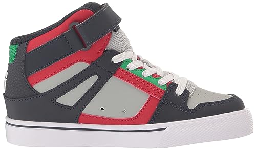 DC Boy's Pure High Top EV Skate Shoes with Ankle Strap and Elastic Laces, Heather Grey/Navy, 11 Little Kid 6