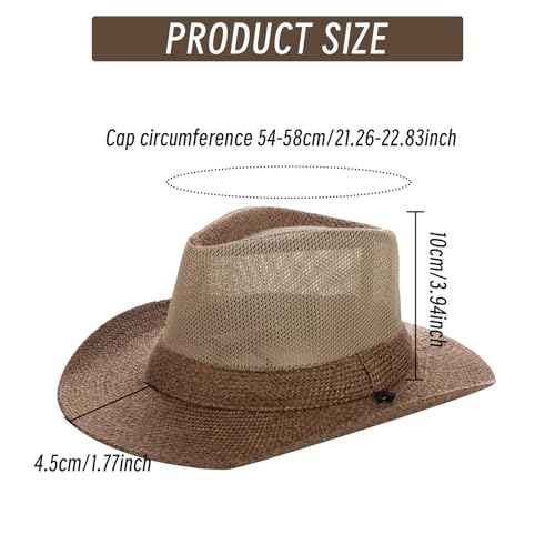 • Adjustable Fit for All Sizes: Designed with an adjustable circumference of 54-58 cm (21.26-22.83 inches), this cowboy hat ensures a perfect fit for most head sizes. The chin strap provides added security, so it stays in place during windy conditions.