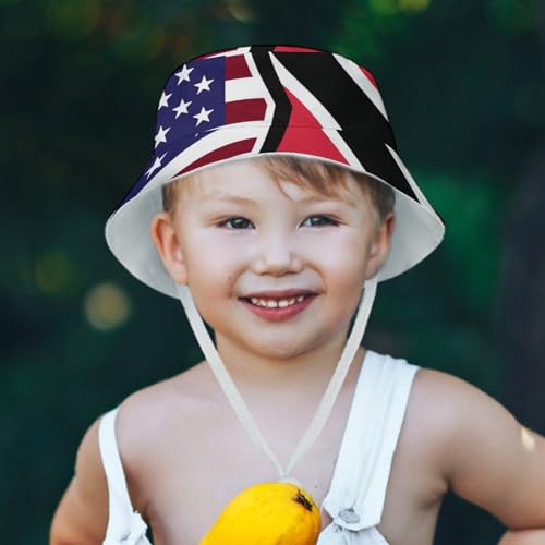 American and Trinidad Tobago FlagChildren's Bucket Hat for Boys and Girls, Breathable Summer Beach Hat54cm 1
