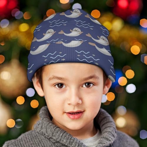 Animal Seal Pattern Kids Beanie Hat for for Girls Boys Children Cap Winter Knitted Chemo Cancer Headwear Accessories Gifts Decoration Black 7