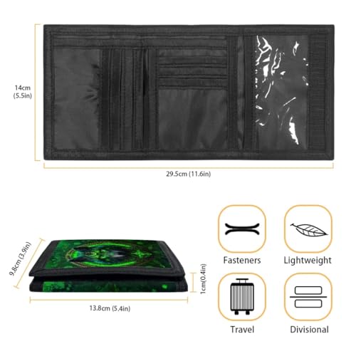 Kids Stylish Prints Trifold Wallet Teens Boys Girls Coin Case Lightweight Card Holder Moneybag Organizer,Viking Wolf Green 1