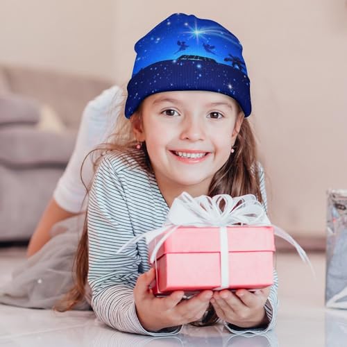 Christmas Christian Nativity Scene Kids Beanie Hat for for Girls Boys Children Cap Winter Knitted Chemo Cancer Headwear Accessories Gifts Decoration Black 7