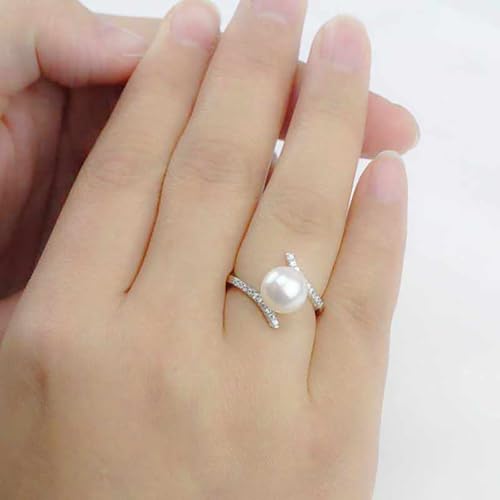 Graceful Wedding Band with Simulated Pearl for Women Shiny Cubic Zirconia Engagement Jewelry 7