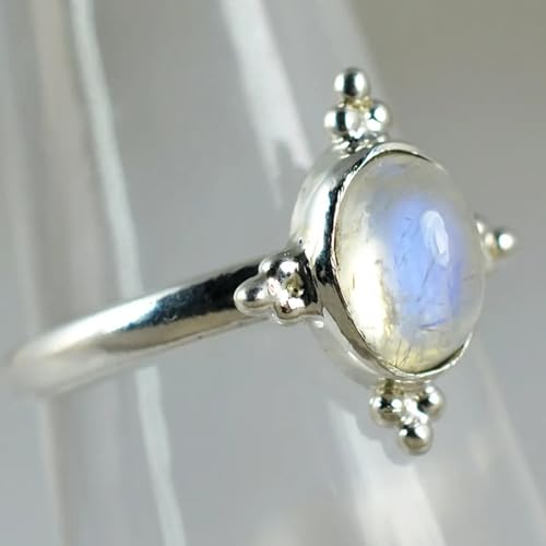 Navya Craft Rainbow Moonstone Silver Ring, 925 Sterling Silver Handmade Statement Promise Ring for Women, Natural Gemstone Boho Jewelry, June Birthstone, Gift for Her Birthday Anniversary (5.5) 9