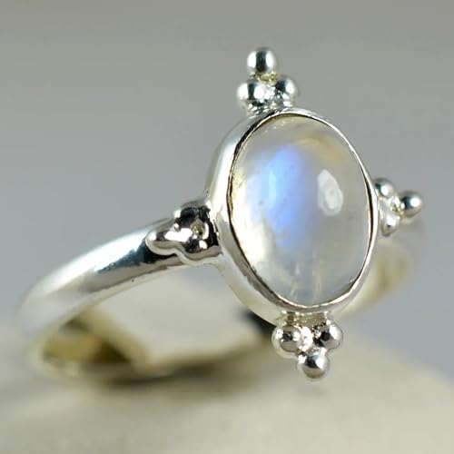 Navya Craft Rainbow Moonstone Silver Ring, 925 Sterling Silver Handmade Statement Promise Ring for Women, Natural Gemstone Boho Jewelry, June Birthstone, Gift for Her Birthday Anniversary (5.5) 8