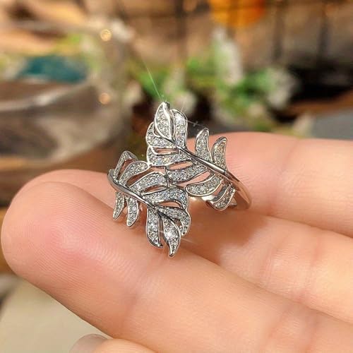 White Gold Plated Cubic Zirconia Elegant Luxury Leaf Statement Ring Personalized Accessory Ideal for Women's Daily Casual Wear Party Holiday Anniversary Love Jewelry Gift 7