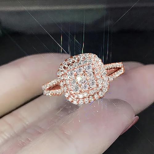 Fashion Rose Gold Color Women Rings with Sparkling Cubic Zirconia Aesthetic Wedding Jewelry 6