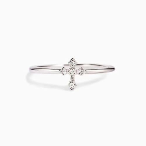 Cubic Zirconia Statement Ring Cross Personalized Accessory Ideal for Women's Daily Casual Wear Party Holiday Anniversary Silver Gold Jewelry Gift 5