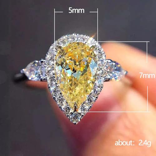 White Gold Plated Yellow Teardrop-shaped Cubic Zirconia Inlaid Sparkling Chic Engagement Rings Wedding Bridal Band Promise Rings Evening Parties Anniversary Valentine's Day Gifts Eternity Bands for Women 7