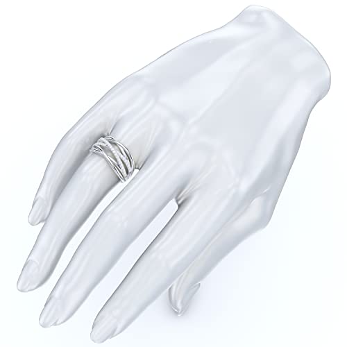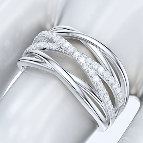14k White Gold 10mm Wide Multi-Row Crossover Fashion Simulated Diamond or Genuine Moissanite Pave Ring Wedding Band 6