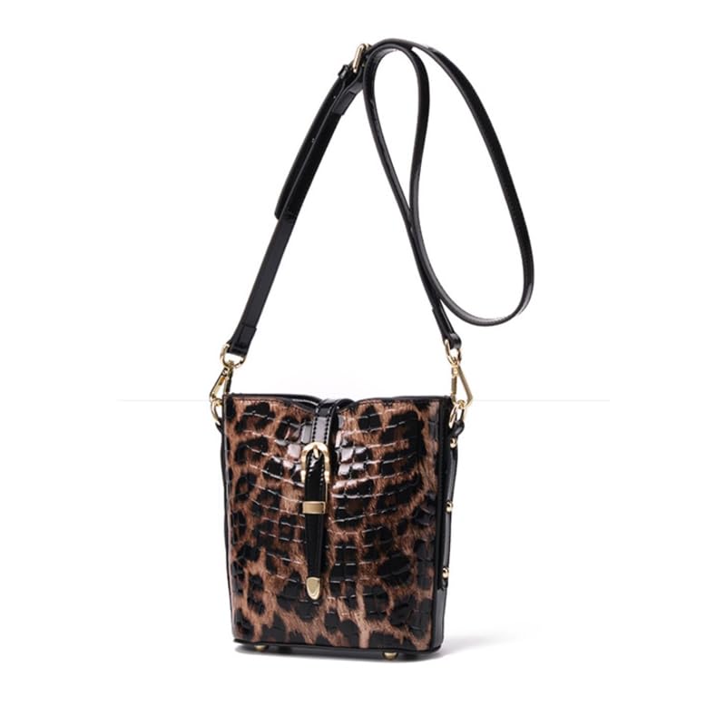 • This crossbody bag is a style standout with its bold leopard - print design, giving off a wild and fashionable vibe. Made from top - layer leather, it boasts a luxurious look and a supple, premium feel. The leather not only elevates the bag’s aesthetic but also ensures long - lasting durability, so you can flaunt this trendy piece season after season. It's the perfect accessory to add an edgy touch to any outfit, whether it's a casual jeans - and - tee combo or a dressier ensemble.